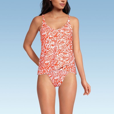 Lands' End Women's D-Cup Chlorine Resistant V-Neck Tulip Hem Tankini Swimsuit Top with Adjustable Straps