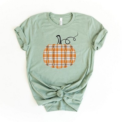 Simply Sage Market Women's Orange Plaid Pumpkin Circle Short Sleeve Graphic Tee