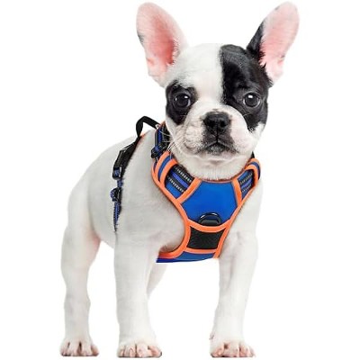 rabbitgoo Dog Harness No Pull with 2 Leash Clips, Control Handle for Small Dogs, Blue & Orange, S