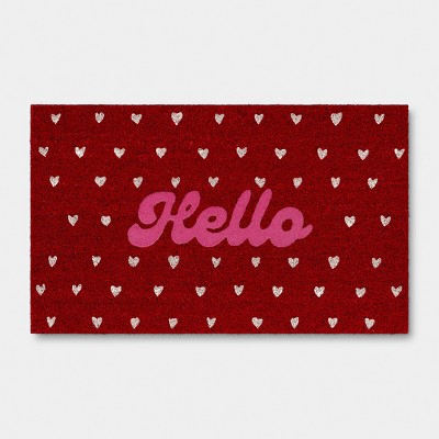 Valentine's Day Hello Flocked Hearts Coir Doormat Red - Room Essentials™