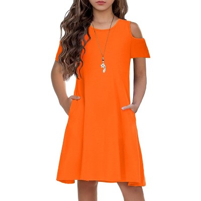 LA LEELA Womens Summer Vacation Casual Short Swing Dress Relaxed Maternity House Wear Dresses Medium/Large Orange, Tie Dye Design