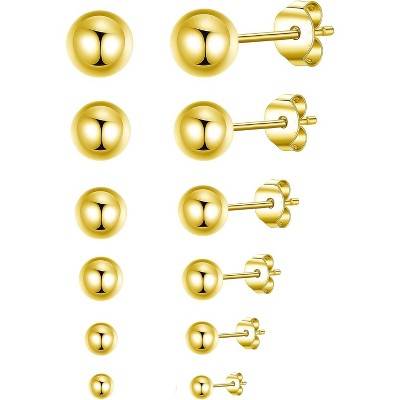 14K gold-plated polished small zircon and pearl ball earring set, 20g medical-grade steel studs, 6 pairs