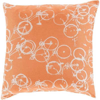 18" X 18" Off White And Orange Stencil Blown Seam Suede Throw Pillow