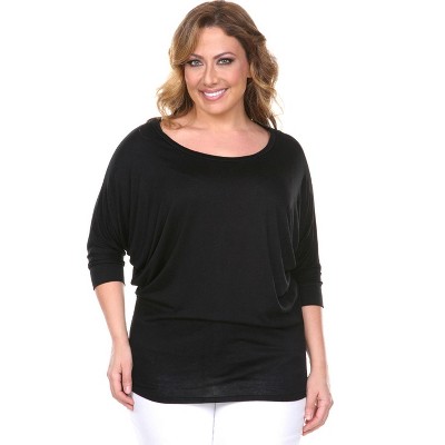 Women's Plus Size 3/4 Sleeve Printed Erie Tunic Top with Pockets - White Mark