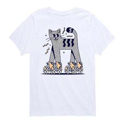 Boys' - Instant Message - Retro Cat Roll Skating Short Sleeve Graphic T-Shirt