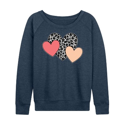 Women's - Barbie - Leopard Heart Lightweight French Terry Wide Neck Long Sleeve Graphic Shirt
