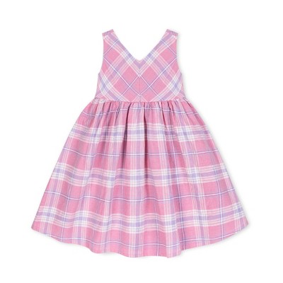 Hope & Henry Girls' Sleeveless Linen Swing Dress, Tea Room Pink Plaid, 2T