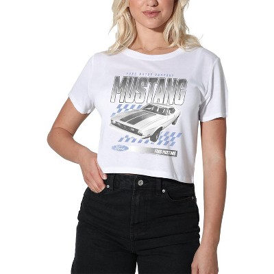 Women's Ford Mustang Mach 1 Checkered Crop Top T-Shirt, White, Large