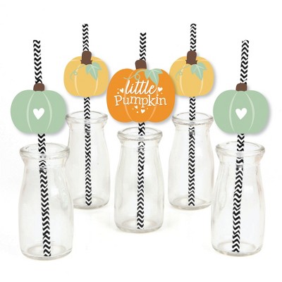 Big Dot of Happiness Little Pumpkin - Paper Straw Decor - Fall Birthday Party or Baby Shower Striped Decorative Straws - Set of 24