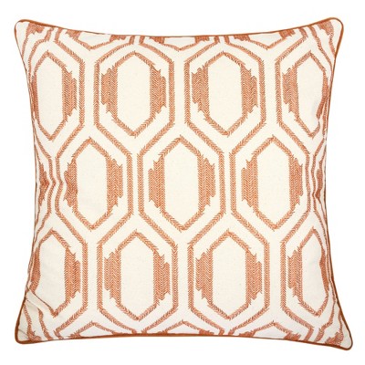 Tramull 20x20"Geometric Embroidered Cotton Throw Pillow,Rust