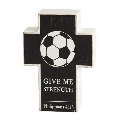 Distressed Black Give Me Strength Soccer 4 inch Resin Decorative Tabletop Cross