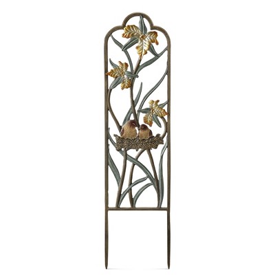 SPI Home Narrow Lovebirds in Nest Trellis – 33" Tall Cast Aluminum Outdoor Decor with 7.75" Spikes and Romantic Garden Detail
