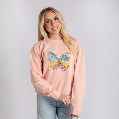 Butterfly Faux Patchwork - Women's Lightweight Garment Dyed Sweatshirt