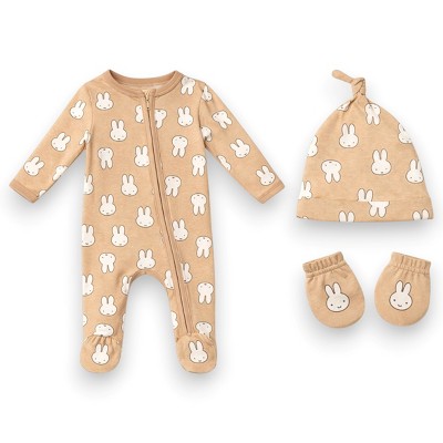 Miffy Baby Boys’ 3-Piece Ultra-Soft Sleep N’ Play Coverall, Beanie & Mitten Layette Sets