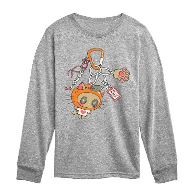 Boys' - Instant Message - Orange Kitty Carabiner Long Sleeve Graphic T-Shirt