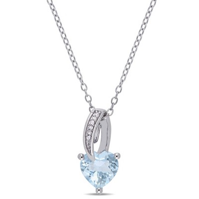 EVERLY JEWELRY | Sterling Silver 0.018 CT Diamond TW & 1 1/2 CT TGW Aquamarine Heart Pendant With Chain