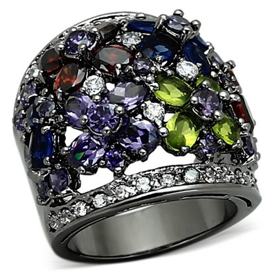 Slickblue Brass Ring with Multi-Color CZ Stones & Ruthenium Finish for Women – Synthetic Jewelry, Sizes 5-9