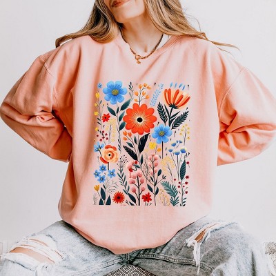 Simply Sage Market Women's Lightweight Garment Dyed Graphic Sweatshirt Cottagecore Floral