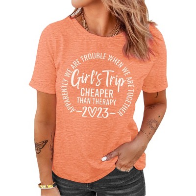 Girls Trip Cheaper Than Therapy 2023 T-Shirt Women Funny Letter Print Short Sleeve Graphic Tee Shirts