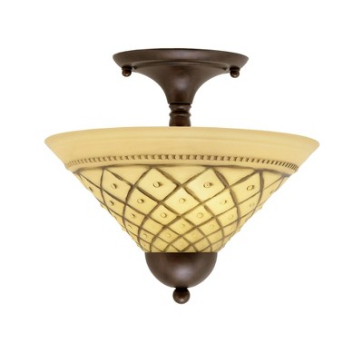 Progress Lighting Messina Collection 2-Light Flush Mount, Antique Bronze, Etched Alabaster Glass