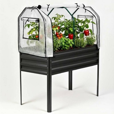 GustoWave Raised Garden Bed with Greenhouse Cover, Built-in Spray Tube for Vegetables