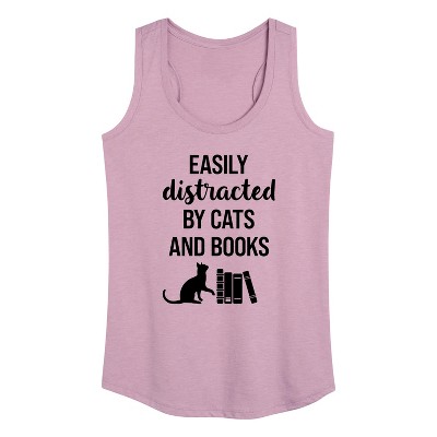 Women's - Instant Message - Easily Distracted Cats Books Graphic Racerback Tank