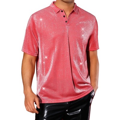 INSPIRE CHIC Men's Short Sleeve Disco Glitter Metallic Polo Shirt