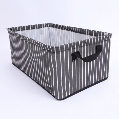 Aoibox Large Storage Bins with Lids Collapsible Organizer Decorative Boxes with Handles Gray White Stripes 2 Pack