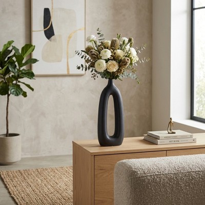 Sagebrook Home Ceramic Vase - Contemporary Abstract Cut-Out Vase Narrow