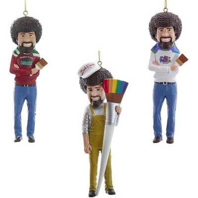 Kurt Adler Plastic Ornaments for Christmas Tree, Bob Ross (Set of 3)