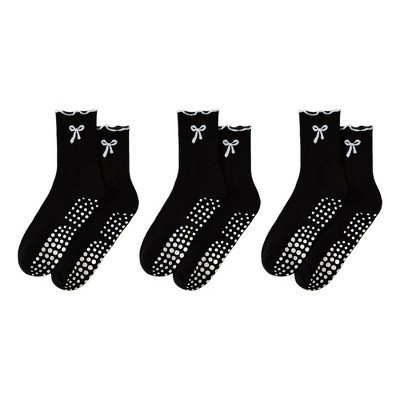 Anna-Kaci Women's 5-Pair Ribbed Crew Socks Set with Embroidered Details Bow Accents Soft Stretch Knit Giftable Basics - Multicolors