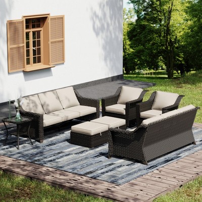 vidaXL 7 Piece Patio Sofa Set with Cushions Poly Rattan