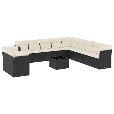 vidaXL 11 Piece Patio Sofa Set with Cushions Black and Cream - With Table