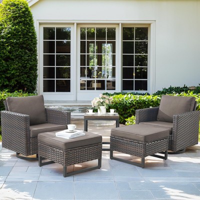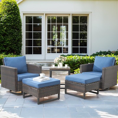 Captiva Designs 6pc extra large metal and rattan outdoor patio conversation set with table, swivel armchairs and ottoman