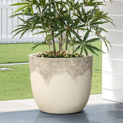 LuxenHome 15.75" Dia Off-white Large Plant Pot, Stone-like Textured Round Planter for Indoor and Outdoor Plants Beige