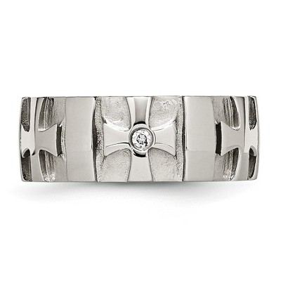 Chisel Stainless Steel Brushed and Polished 3pt Diamond Cross 9mm Band Ring