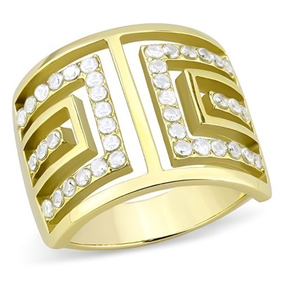 Slickblue Women’s Mask Design Ring – IP Black Stainless Steel with Metallic Light Gold Synthetic Crystal, size 5-10