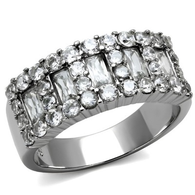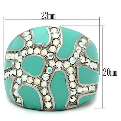 Slickblue Women's Pave Ring Polished Stainless Steel Synthetic Crystals, Aurora Borealis Rainbow Effect, Sizes 5-10