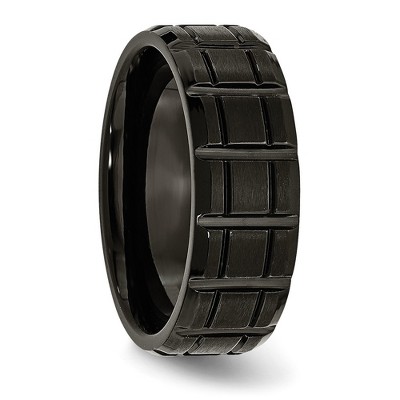 Chisel Stainless Steel Polished Black IP-plated 8mm Curb Link Band Ring