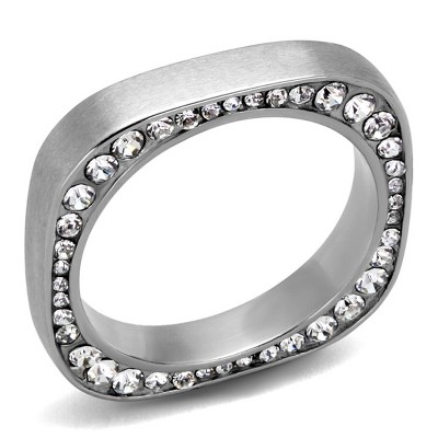 Slickblue Women's Polished Stainless Steel Novelty Ring with Synthetic Crystal, Silver/Black, Size 5-10