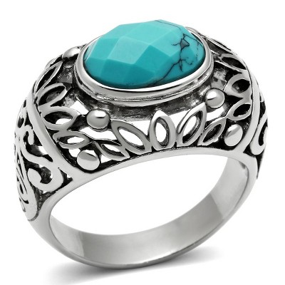 Chisel Stainless Steel Polished Arrow with Turquoise and Wood Inlay 8mm Band Ring