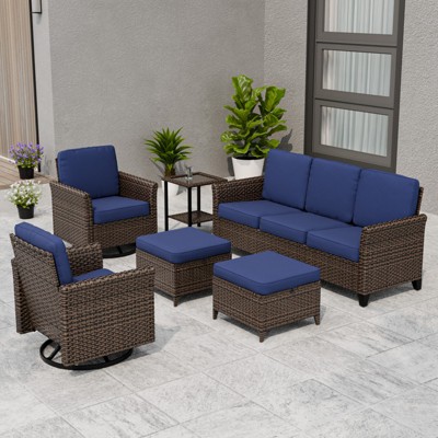 GustoWave 3-Piece Outdoor Wicker Rocking Chair Bistro Set With 2 Swivel Chairs And Tempered Glass Tabletop For Patio Porch Backyard