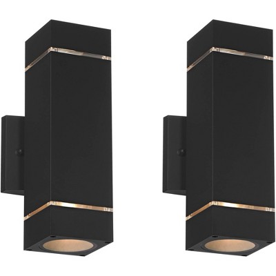Possini Euro Design Skyridge 11 3/4" High Modern Outdoor Wall Light Fixture Mount Porch House Exterior Outside Set of 2 Up Down Black Aluminum