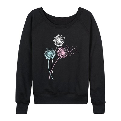 Women's - Instant Message - Pastel Dandelions Lightweight French Terry Wide Neck Long Sleeve Graphic Shirt