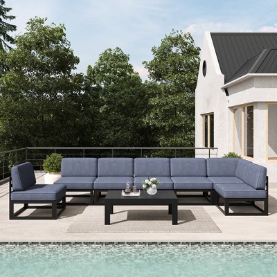 LayinSun 8-Piece Large Outdoor Modular L-Shaped Sectional Set with Coffee Table
