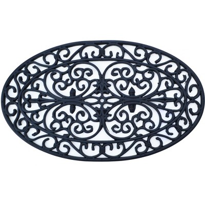 HomeRoots 18" X 30" Black Scrollwork Outdoor Rubber Door Mat