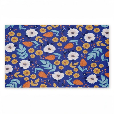 Stupell Industries Pumpkin With Blue Floral Background Printed Outdoor Imitation Sisal Door Mat, design by Creative Studio