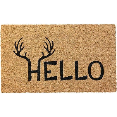 HomeRoots 17" X 29" Natural And Black Hello With Antlers Coir Outdoor Door Mat