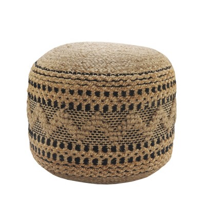 HomeRoots 18" White Jute Blend Round Geometric Pouf Ottoman