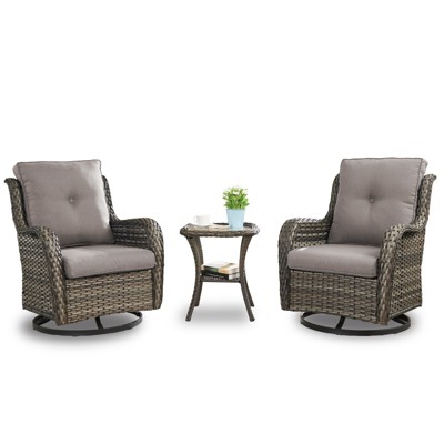 Outsunny 3 Pieces Outdoor Swivel Bistro Set, 2 Rocker Chairs and 1 Round Tempered Glass Table with Cushion, Yard, Lawn, Porch and Garden Furniture